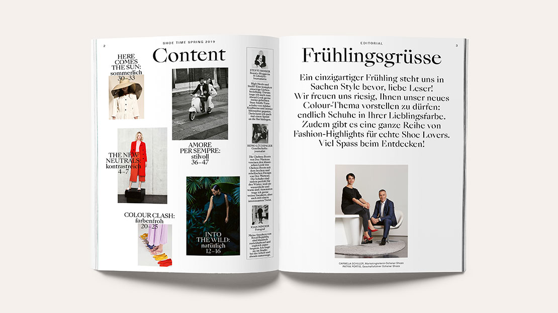 Im Zuge der umfassenden Kommunikationsaktivitäten für Ochsner Shoes wurde das Kundenmagazin «ShoeTime» neu gestaltet und erschien im Frühling 2019 mit einer Auflage von 700'000 Exemplaren erstmals im neuen Format sowie im neuen Look. Der Umfang des Magazins wurde von 36 auf 60 Seiten ausgebaut und bietet den Kundinnen und Kunden neben Neuigkeiten aus der Welt des Schweizer Schuhanbieters auch eine Vielzahl an aktuellen Inspirationen und Mode-Themen.