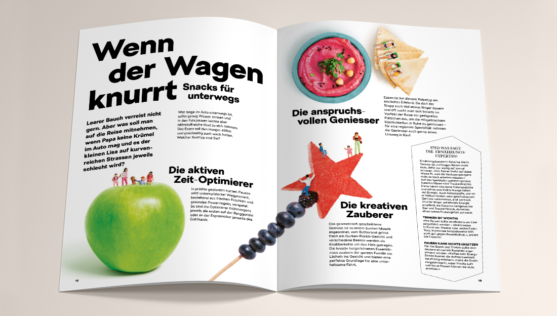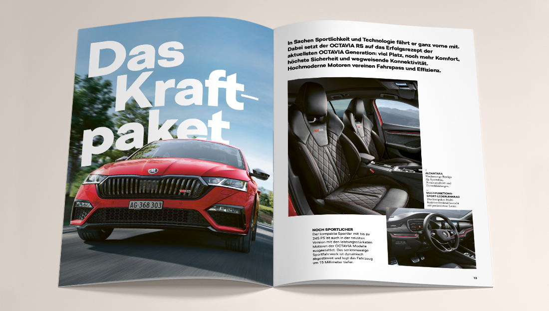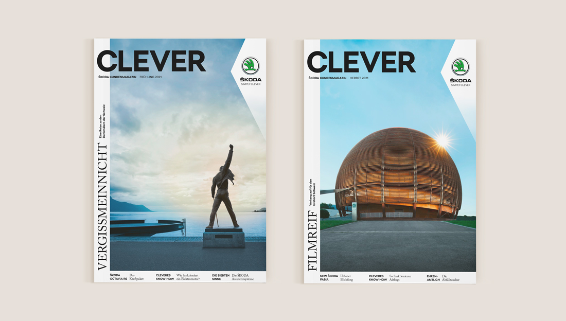 Das Kundenmagazin von ŠKODA informiert Leser nicht nur über die neuesten Modelle und spannende Themen rund ums Auto, sondern bringt diese auch an die schönsten Orte der Schweiz – und das aktuell in einem modernisierten Layout und einem noch handlicheren Format. Für das Redesign des beliebten Magazins wurden aber nicht nur formale Aspekte erneuert, sondern auch inhaltlich vieles überarbeitet. Wir haben neue Gefässe entwickelt und das Storytelling noch kundenorientierter gestaltet – mit dem Ziel bestehende Kunden enger an die Marke zu binden, ihnen aber gleichzeitig auch die Markenwerte näher zu bringen. Den roten Faden durchs Magazin bildet die «Cleverness», die auch im Kern der Marke ŠKODA steht. Von Interviews mit besonders einfallsreichen Persönlichkeiten bis hin zu praktischen Reise-Hacks begeistert das neue Magazin die Leser mit grossflächigen Bildern und verspielten Layouts sowie abwechslungsreichen Texten vom mehrseitigen Bericht bis hin zur kurzweiligen Randspalte.